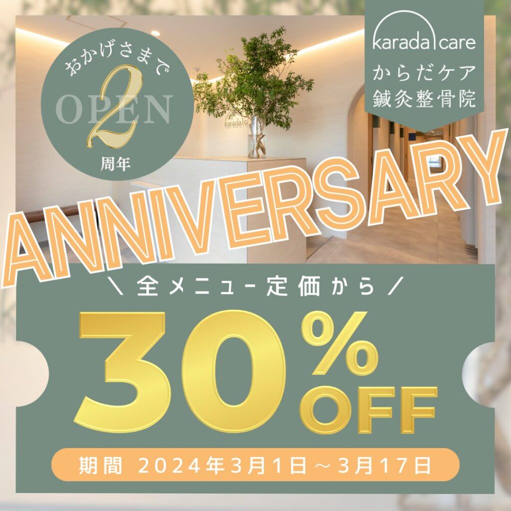 からだケア鍼灸整骨院は2周年を迎えます。