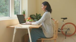 長時間同じ姿勢でいる場合は、定期的に立ち上がり、軽いストレッチをして体をリセットする習慣をつけると腰痛予防になります。